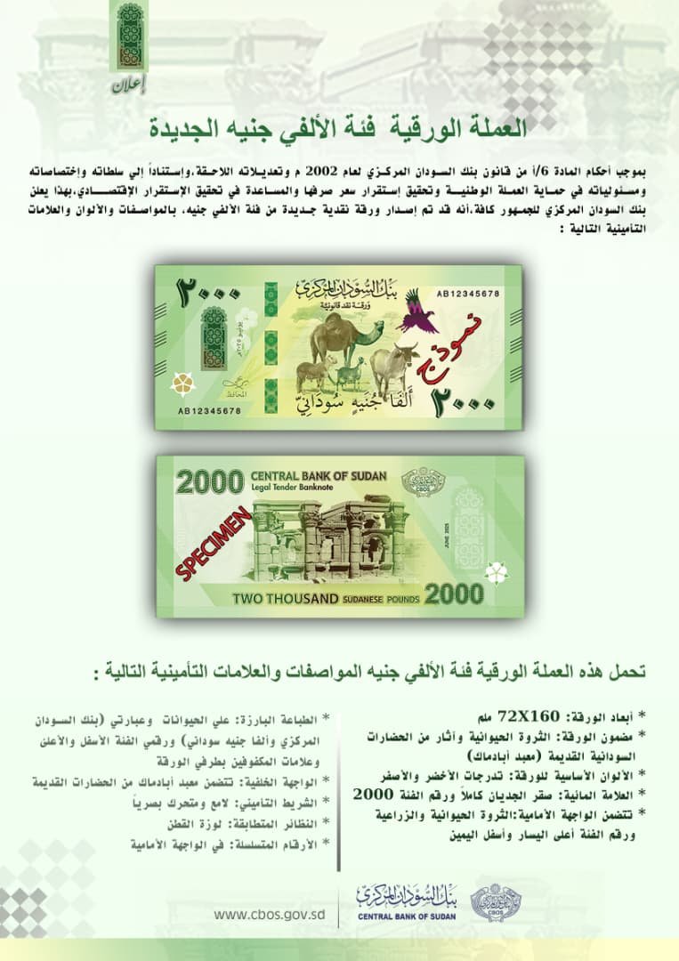 تفاصيل المواصفات الخاصة بالإصدار الجديد من العملة الورقية فئتي 2000 جنيه و 500 جنيه حسب…
